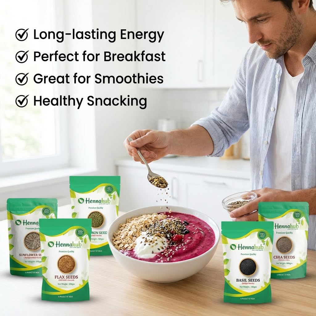 Hennahub 5-in-1 Super Seeds Power Combo - Premium Breakfast & Snacking Superfoods Upgrade your nutrition with the Hennahub 5-in-1 Super...