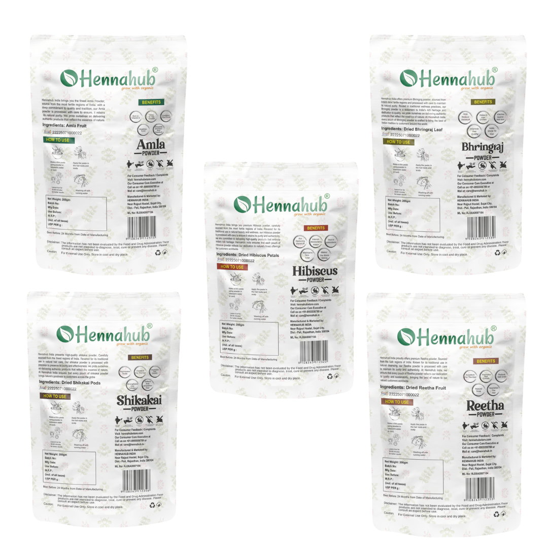 Contents | Amla, Reetha, Shikakai, Bhringraj, Hibiscus (200g each) – Total 1 kg |
