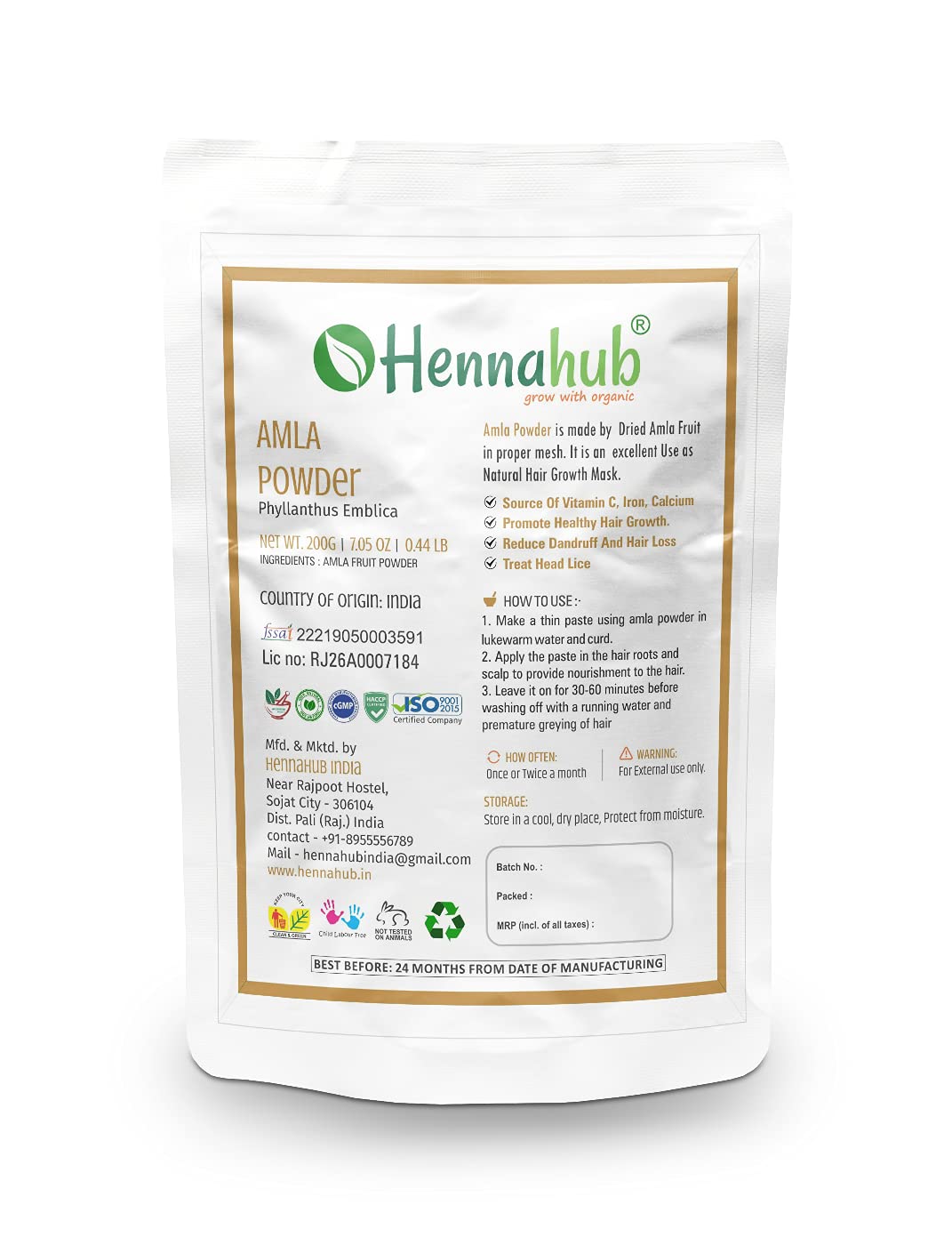 Hennahub Natural Henna 1 kg + Amla, Reetha, Shikakai, Bhringraj, Hibiscus Powder for Hair, 200g each (Pack of 5)