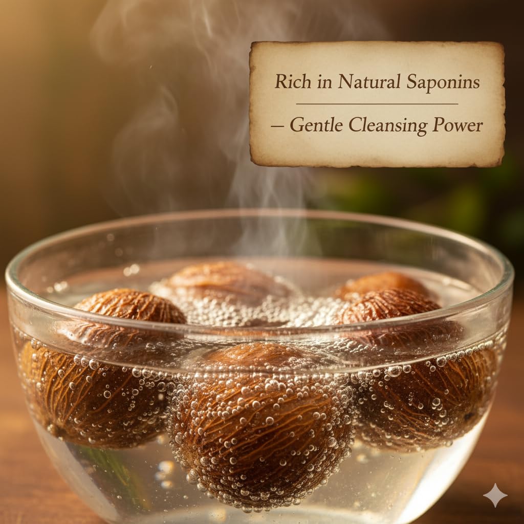 Soak 10-15 dried Reetha fruits overnight. Boil them with water until soft, then strain and use the liquid as a natural shampoo or cleanser. You can also grind dried reetha for powder-based recipes.